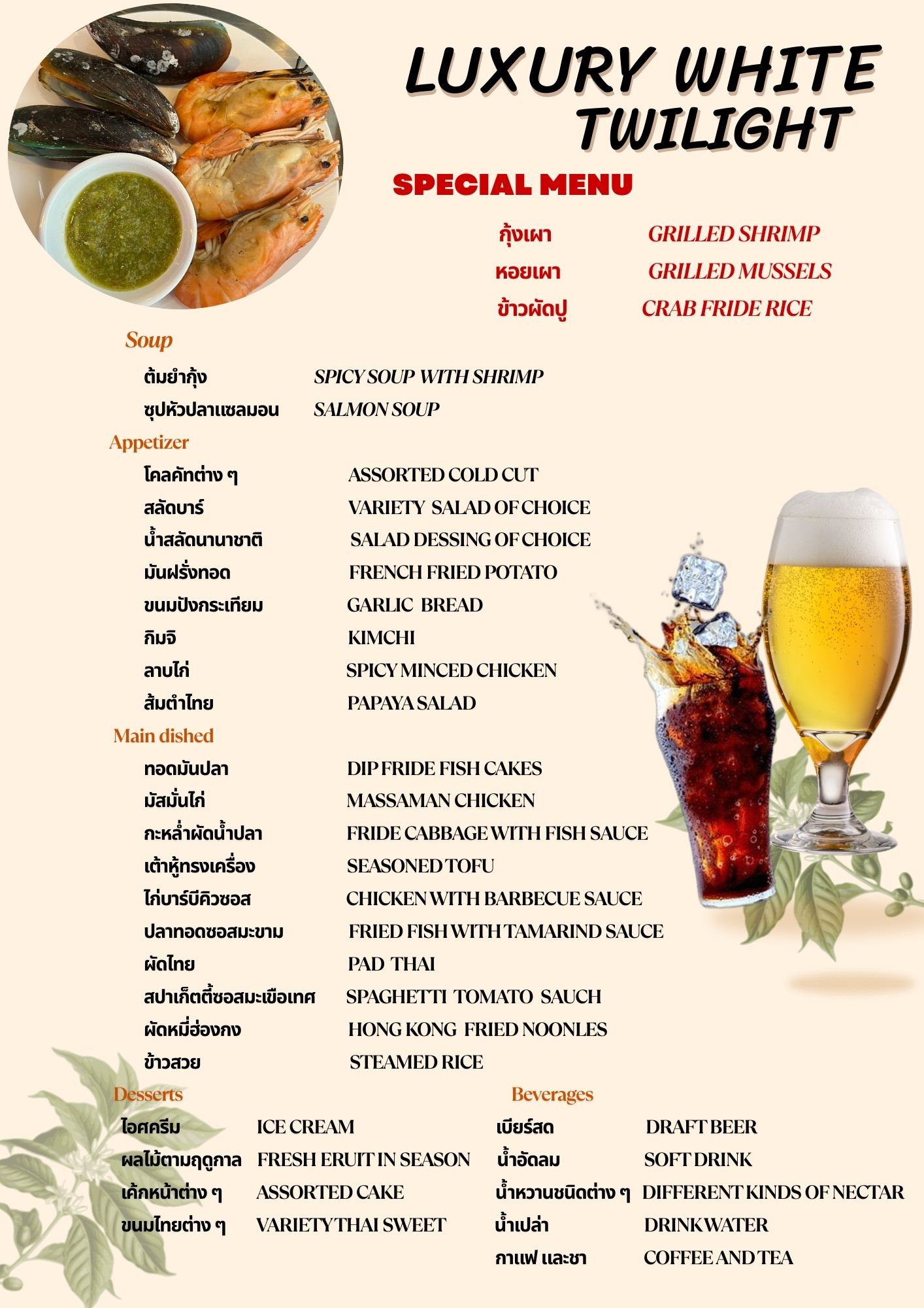 The cruise ship is a three-level boat with an open-air rooftop, the 2nd floor that consists of an air-conditioned zone and an open-air front deck, and an air-conditioned 1st floor. It is one of the newest Chao Phraya River dinner cruises, as it started operating in December 2024.